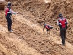 Pantauan di lokasi, tim K9 membawa kaos milik korban yang dibawa oleh pihak keluarga. Bahkan beberapa kali mengendus gundukan tanah longsor.